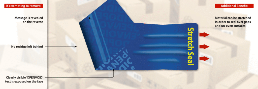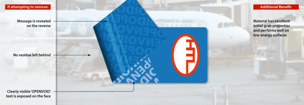 A non residue tamper evident seal. Once the label is removed a very visible void open will appear on the face material.